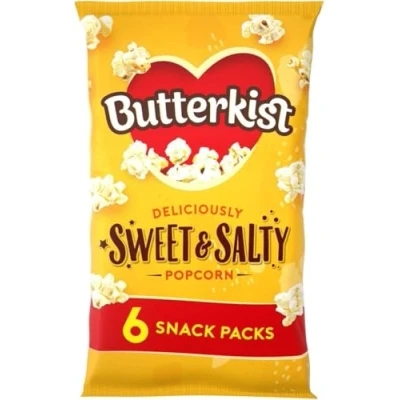 Butterkist SWEET & SALTY Popcorn 6 x 12g Bags 60 Calories Per Bag Gluten Free, No Artificial Colours or Flavours, Suitable for Vegetarians