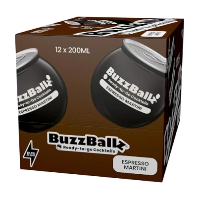 ESPRESSO MARTINI: Savor aromatic, deep java flavor with a hint of sweetness in this caffeinated coffee cocktail - crafted with premium vodka, roasted coffee, and natural flavors, this ready-to-drink cocktail offers a sophisticated taste experience READY TO SIP: No mixing, no fuss - this Espresso Martini comes perfectly blended and chilled in its iconic BuzzBallz orb. Just pop it open and enjoy bar-quality flavour anytime, anywhere ADVENTURE READY: Made with sturdy PET packaging that’s tough enough for festivals, picnics, beach days or BBQs. Light, shatterproof and easy to pack - BuzzBallz goes wherever the good times roll! FULL‑STRENGTH COCKTAIL: Big taste, bold buzz - BuzzBallz packs 13.5% ABV of pure fun in every pour, serving up real cocktail flavour in a perfectly balanced, ready‑to‑drink sphere REINVENTING HAPPY HOUR: Founded by entrepreneur Merrilee Kick, BuzzBallz is a woman‑founded brand shaking up cocktails with innovation and fun. BuzzBallz crafts happiness with purpose and sustainability MULTIPACK: 12-pack, 200ml