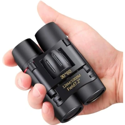 HIGH POWER MAGNIFICATION : Binocular with Full 30x magnification and 60mm objective lens diameter offers maximum image brightness in long-range and low-light conditions COMPACT AND LIGHTWEIGHT: Folding Small Binoculars, can keep in backpack and pocket, good idea for hiking and travelling , best gifts for adults and kids. Protective rubber armoring makes it usable to withstand the toughest weather conditions and greater durability. LARGE FIELD OF VIEW: 7.2 degree 126M/1000M, good for fast moving subject, BK4 prism & FMC Multicoated Optics, Perfect for adults bird watching, traveling, sightseeing, hunting, wildlife watching, hiking, sports events, etc. EASY OPERATION : The compact binoculars are adjusted by the smooth center focus knob , The width can be adjusted for different sizes of faces. PERFECT FOR USE: For adults, kids, concerts, opera, plays, shows, travel, hiking, camping, sport events, bird watching. Protective rubber armoring makes it usable to withstand the toughest weather conditions and greater durability.