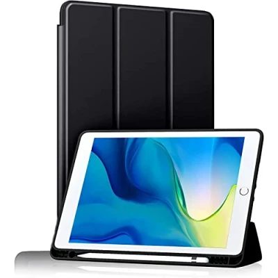 BXGH iPad Case for 9th/8th/7th Generation 10.2" with Pen Holder, 2021/2020/2019 Soft Silicone Backing, Auto Wake/Sleep Cover Black
