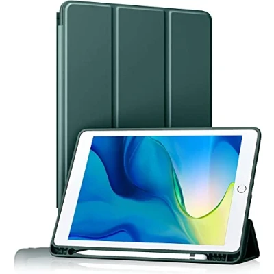 BXGH iPad Case for 9th/8th/7th Generation 10.2" with Pencil Holder, 2021/2020/2019 Soft Silicone Backing, Auto Wake/Sleep Protection Dark Green