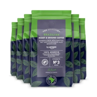 by Amazon Brazilian Roast and Ground Coffee, Medium Roast, 1.36Kg (6 Packs of 227g), Rainforest Alliance Certified