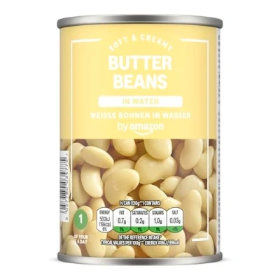 Butter beans in water Soft & creamy Contains 2 servings Store in a cool, dry place Suitable for vegetarian and vegan diets Stir well and drain before use High protein High in fibre Packed in Italy