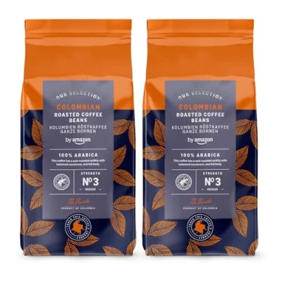 by Amazon Colombian Coffee Beans, Medium Roast,1Kg (2 Packs x 500g) Rainforest Alliance Certified