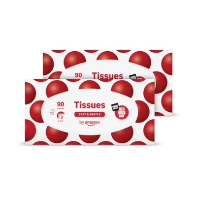 by Amazon Red Nose Day Facial Tissues, 3 ply 90 sheets, Twin Pack (2 pack), Lotioned tissues on behalf of Comic Relief