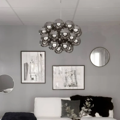 Design Concept Gross Grande Pendant Ø62 Smoke is a light and elegant lamp with an exquisite, exclusive design. It consists of a cluster of handblown glass spheres that come together to resemble a light cloud or even a grapevine. The light glass gives the lamp an airy expression, giving the design a certain lightness and elegance. The unique appearance of the lamp results in an artistic expression that gives your décor excellent light and a dash of personality. Use it as an eye-catching feature above your dining table or in hallways with tall ceilings where it illuminates its surroundings in a soft, atmospheric glow. With the Gross lamp, you get more than just a refined design. You get an amazing light of high quality..