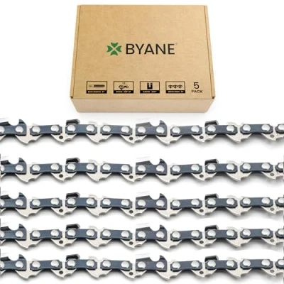 BYANE 8 Inch Chainsaw Chain, 3/8" LP Pitch, .043'' Gauge, 34 Drive Links (5 chains)