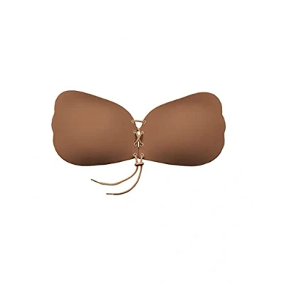 Bye Bra Lace It Bra, Adhesive Push up Self Sticky Strapless and Backless Cup A E, Beige/Black/White (Brown, C)