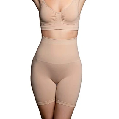 SEAMLESS: The material and seamless construction of the shorts makes them invisible under every piece of clothing. MEDIUM CONTROL: This Shapewear made of soft and stretchy fabric helps smoothing bumps and bulges on the tummy and butt area. Prevents thigh chafing with its mid-thigh length SECOND SKIN: The Seamless Shorts feel like a second skin under your clothing while enhancing your body's natural shape. MULTIPLE SIZES AND COLOURS: Comes in Black and Beige from S to XXL. Check the size chart to determine which size you fit into. CARE: Wash at or below 30 degrees, do not bleach, do not iron, do not tumble dry, do not dry clean.