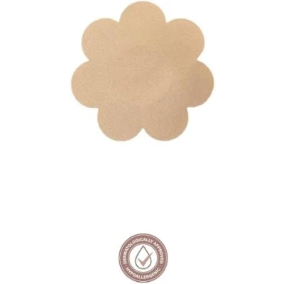 Bye Bra Silk Nipple Covers Women Pasties One Size Flower Shaped 4 Single Use Pairs For Daily Wear Strong Henkel Adhesive, Nude