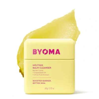 CLEANSE + NOURISH This deeply hydrating cleansing balm melts away makeup, SPF + impurities while supporting the skin barrier. The soft, velvety texture melts into an oil on contact with skin without clogging pores or leaving an oily residue. BUTTERY-SOFT: Skin boosting Niacinamide balance the complexion + control oiliness, while Grapeseed Oil hydrates skin cells to minimize trans-epidermal water loss. BARRIER-BOOSTING: BYOMA’s carefully researched Barrier Lipid Complex utilises a concentration of ceramides + skin identical lipids in an oil-based formula for the same results you know + love from BYOMA’s Tri-Ceramide Complex. THE ULTIMATE SKIN-COMPATIBLE SOLUTION: Dermatologist tested + approved skin care, soap-free, non-comedogenic, alcohol + fragrance-free, vegan + cruelty free. Suitable for all skin types. BACKED BY SCIENCE: Efficacy is the new luxury. That's why BYOMA delivers clinically-proven formulas backed by science + powered by actives. When we stop stripping our skin + start boosting our barrier, we find the key to balanced, brighter skin.