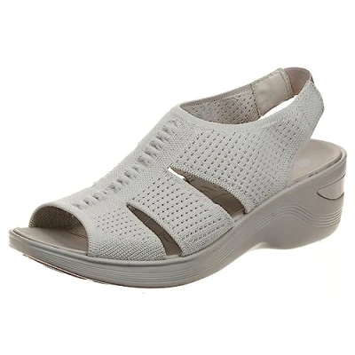 Stretch engineered knit upper Peep toe Slip-on fit with stretch gore heel sling strap Cutout detailing BZEES Air Step Technology: Welcome to Cloud 9