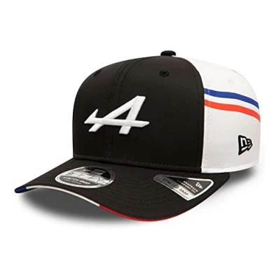 9Fifty stretch snapback six panel adjustable cap of the Formula 1 racing team Alpine with slightly curved peak. Officially Licensed Formula One Merchandise Produced by the world-renowned brand and NFL, NBA and MLB equipment New Era. Elaborate and high-quality team appliqué on the front. Team lettering on the right and embroidered New Era flag on the left side. A higher crown and the high-quality workmanship give a comfortable fit. Size information: thanks to a clip closure on the back, the hat is adjustable. There are two different sizes: S-M = 54.9 - 59.6 cm, M-L = 57.7 - 61.5 cm