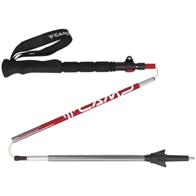 Aluminium folding stick 5 segments with internal cord equipped with micro tension adjustment system Variable length from 115 to 135 cm - Folded length 36 cm Practical storage bag included Double foam handle allows for grip at different heights Ergonomic straps made of soft material, differentiated right and left ("R" and "L") and adjustable Supplied with Dart Basket wheel code 3225 (assembled as standard) and small and large wheels (included) for use in all seasons Easy to assemble and disassemble. Quickly adjustable thanks to aluminium clip Screw tightening that adjusts the locking of the aluminum clip does not require the use of screwdriver or other tools Carbide ferrule Rubber toe cap included