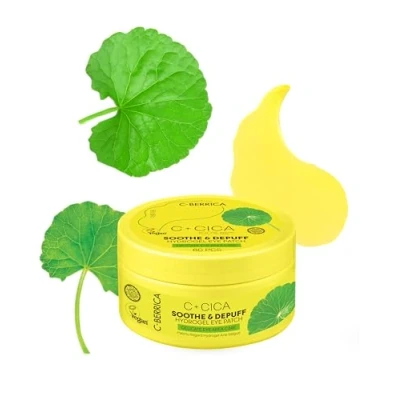 C+CICA C BERRICA SOOTH & DEPUFF HYDROGEL eye PATCH delicate area care. K Beauty inspired GLASS SKIN routine infused with Centella Asiatica and Vitamin C, 60pcs