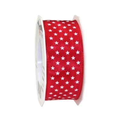 C.E. Pattberg Präsent Mini Stars Wired & Printed Ribbon Red 40 mm width, 20 m length