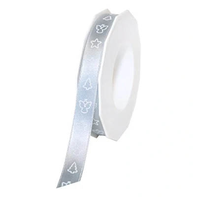 O Tannenbaum collection 2016: high quality German holiday ribbon featuring Modern, traditional Christmas Icon Designs printed in white 100Percent polyester 5/8 inch by 22 yards in color Silver Christmas Icon ribbon is great for gift wrapping, holiday party favors, scrapbooking, Floral Designs and many other crafting projects Finished edge Morex item Number 70015/20-631