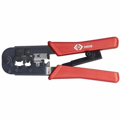 The C.K Ratchet Crimping Pliers are designed to be a strong and durable solution for the safe and secure attachment of modular plugs (6P4C (RJ11), 6P6C (RJ12), 8P8C (RJ45) and 6P6C/Offset) without die changes. Safe & Secure attachment of modular plugs without die changes. Full cycle ratchet mechanism for safe, repeatable results and comfortable ergonomic handles. Heavy duty body construction with hardened steel jaws - guaranteed for up to 30,000 cycles. Built in wire stripper & cutter mechanism for convenience. Factory set crimp pressures for the optimum connection safety. Suitable for plugs type: 6P4C (RJ11), 6P6C (RJ12), 8P8C (RJ45) and 6P6C/Offset Tool measures 220 mm in length.