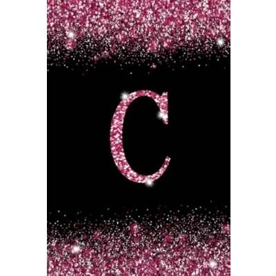 C: Letter C Initial Alphabet Monogram Notebook Monogrammed confetti Writing Journal Printed Glitter Black and pink, Diary Planner Gift For Kids Girls Women