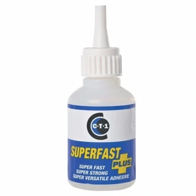 C-Tec SuperFast Plus is an extra-strength bonding glue formulated from solvent-free an ethyl-cyanacrylate monomer designed to withstand incredible strain when bonded to virtually any material. (exludes polyethylene, polypropylene and fluorine containing plastic materials) Resistant against solvents, oils, benzene, temperatures between -30 - 100 degrees celcius, and atmospheric changes, joints bonded with Superfast Plus have outstandingly high tensile shear strength and show no shrinkage. Superfast Plus can easily bond: ABS, Aluminium, Bakelite, Bronze, Buthyl, Celluloid, Choroprene, Chrome, Delrin, Glass, Copper, Natural rubber, NBR, Neoprene, Nitril, Nylon, Phenol, Polycarbonate, Polystyrene, Porcelain, Hard PVC, Stainless steel, Steel For porous materials we reccomend using C-Tec Super Fast Plus Activator Main Features: Bonds in seconds Solvent-free Cyanacrylate Temperature resistance ranges 130°C from -30°C to 100°C Resistance to erosion from solvents & oils Incredible tensile strength Colourless formula Product Specification Sheet - Click Here You may also be interested in CT-1 Multi-Purpose Ahesive Sealant from C-Tec.