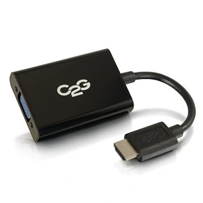 This adapter converter dongle is an ideal solution for connecting the audio/video output of a HDMI-enabled Chromebook or laptop to a VGA display and set of speakers. The dongle design of this adapter converter does not cause the stress on the port of a small laptop that is common when using a box style adapter. Up to a 1920x1080 video resolution is supported, allowing this adapter converter to meet the needs of a high performance application. Connect this adapter directly to the output of a laptop and use a VGA and Stereo Audio cable to connect to a display. This fully-functional, C2G Cable is tested to perform at industry standards and is backed by a lifetime warranty. Product is CE marked and conforms to 2011/65/EU ROHS 2.