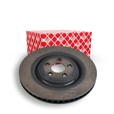 108198; Brake disc; FEBI BILSTEIN; Rear Axle Left 350mm 28mm 5-Hole 108mm slotted/internally vented; for JAGUAR; C2P10563