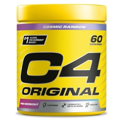 EXPLOSIVE PRE WORKOUT: Ignite your fitness journey with C4 Original, our foundational pre-workout that provides explosive energy and performance for all types of workout at any experience level with 150mg of caffeine. BOOSTS ENERGY AND ENDURANCE: The pre workout energy powder gives you that extra push to power through exercise and fatigue with 150mg caffeine, 1600mg CarnoSyn beta alanine, and 1500mg creatine monohydrate. GREAT TASTING WITH ZERO SUGAR: This refreshing Cherry Limeade flavoured pre-workout sets you up for success with amino acids, vitamin C, vitamin B6, and vitamin B12 and contains zero sugar. There are 12 delicious flavours in total to choose from. TRIED AND TESTED INGREDIENTS: With our 20 years of experience and clinically verified patented ingredients, we've developed an advanced and comprehensive pre work out mix to support peak physical performance. HOW AND WHEN TO USE: Take one serving (1 level scoop is approximately 6.6g) of C4 pre workout mixed with 150-200ml of water 20-30 minutes before training to prepare yourself for a tough session. 1 pack contains 30 servings.