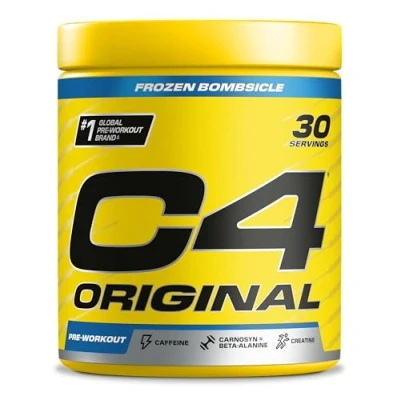 EXPLOSIVE PRE WORKOUT: Ignite your fitness journey with C4 Original, our foundational pre-workout that provides explosive energy and performance for all types of workout at any experience level with 150mg of caffeine. BOOSTS ENERGY AND ENDURANCE: The pre workout energy powder gives you that extra push to power through exercise and fatigue with 150mg caffeine, 1600mg CarnoSyn beta alanine, and 1500mg creatine monohydrate. GREAT TASTING WITH ZERO SUGAR: This refreshing Cherry Limeade flavoured pre-workout sets you up for success with amino acids, vitamin C, vitamin B6, and vitamin B12 and contains zero sugar. There are 12 delicious flavours in total to choose from. TRIED AND TESTED INGREDIENTS: With our 20 years of experience and clinically verified patented ingredients, we've developed an advanced and comprehensive pre work out mix to support peak physical performance. HOW AND WHEN TO USE: Take one serving (1 level scoop is approximately 6.6g) of C4 pre workout mixed with 150-200ml of water 20-30 minutes before training to prepare yourself for a tough session. 1 pack contains 30 servings.