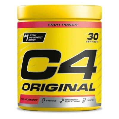 EXPLOSIVE PRE WORKOUT: Ignite your fitness journey with C4 Original, our foundational pre-workout that provides explosive energy and performance for all types of workout at any experience level with 150mg of caffeine. BOOSTS ENERGY AND ENDURANCE: The pre workout energy powder gives you that extra push to power through exercise and fatigue with 150mg caffeine, 1600mg CarnoSyn beta alanine, and 1500mg creatine monohydrate. GREAT TASTING WITH ZERO SUGAR: This refreshing Cherry Limeade flavoured pre-workout sets you up for success with amino acids, vitamin C, vitamin B6, and vitamin B12 and contains zero sugar. There are 12 delicious flavours in total to choose from. TRIED AND TESTED INGREDIENTS: With our 20 years of experience and clinically verified patented ingredients, we've developed an advanced and comprehensive pre work out mix to support peak physical performance. HOW AND WHEN TO USE: Take one serving (1 level scoop is approximately 6.6g) of C4 pre workout mixed with 150-200ml of water 20-30 minutes before training to prepare yourself for a tough session. 1 pack contains 30 servings.