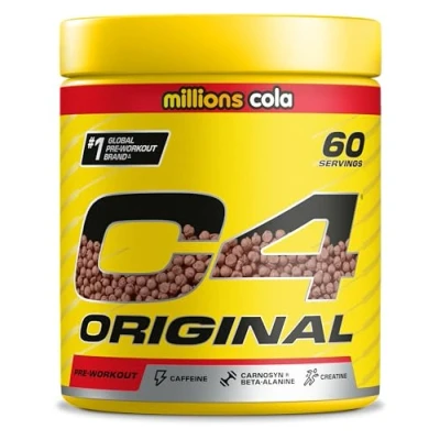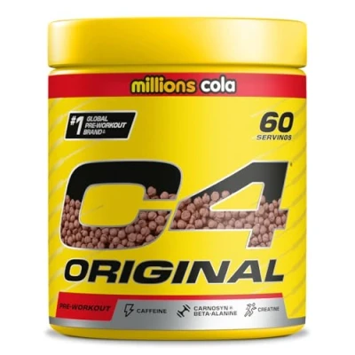 EXPLOSIVE PRE WORKOUT: Ignite your fitness journey with C4 Original, our foundational pre-workout that provides explosive energy and performance for all types of workout at any experience level with 150mg of caffeine. BOOSTS ENERGY AND ENDURANCE: The pre workout energy powder gives you that extra push to power through exercise and fatigue with 150mg caffeine, 1600mg CarnoSyn beta alanine, and 1500mg creatine monohydrate. GREAT TASTING WITH ZERO SUGAR: This refreshing Cherry Limeade flavoured pre-workout sets you up for success with amino acids, vitamin C, vitamin B6, and vitamin B12 and contains zero sugar. There are 12 delicious flavours in total to choose from. TRIED AND TESTED INGREDIENTS: With our 20 years of experience and clinically verified patented ingredients, we've developed an advanced and comprehensive pre work out mix to support peak physical performance. HOW AND WHEN TO USE: Take one serving (1 level scoop is approximately 6.6g) of C4 pre workout mixed with 150-200ml of water 20-30 minutes before training to prepare yourself for a tough session. 1 pack contains 30 servings.