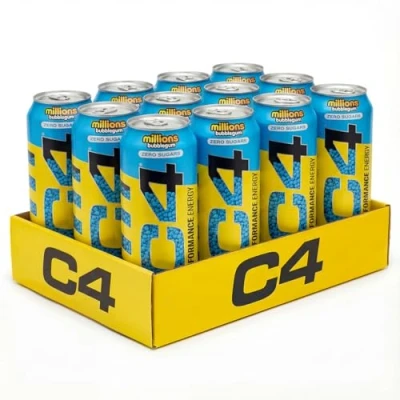 NOSTALGIC FLAVOUR COLLAB: C4 Energy is excited to announce our collaboration with Millions Sweets, celebrated for its nostalgic candy flavours. This unique partnership comes in the best-selling retro Millions flavours - Bubblegum and Strawberry - combined with the classic C4 Performance Energy formula, creating a combo for energy that hits. EXPLOSIVE ENERGY DRINK: Grab energy on the go with C4 Performance Energy. This performance energy drink is the ideal beverage to conquer your goals both in the gym and in everyday life - comes as a 12 x 500ml can multipack. POWERFUL ENERGY BOOST: C4 Performance Energy is powered by BetaPower and other key ingredients that support explosive energy, alertness, and performance. With 160mg caffeine, plus niacin (vitamin B3) and vitamin B12 to help reduce tiredness and fatigue and support normal energy metabolism. ZERO SUGAR SOFT DRINKS: Low in calories with zero sugars and carbohydrates, you can enjoy a can of C4 Performance for a guilt free energising lift to power you through your day. GREAT TASTING SOFT DRINKS: The refreshing Twisted Limeade flavour is a delicious way to get a game changing energy boost - C4 Performance is also available in Frozen Bombsicle, Cosmic Rainbow, Orange Slice, and Pineapple Head.