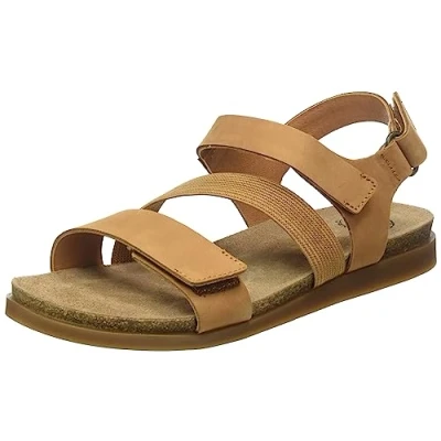 CA'SHOTT A/S Women's Casalice Velcro Elastic Sandal Nubuck Flat, Brandy, 7.5 UK