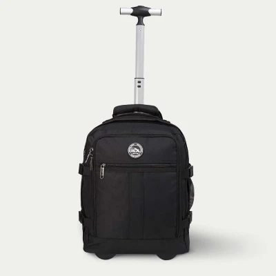 Cabin MaxFlies free on Wizzair. The perfect size (40x30x20cm) for Wizzair’s ‘free’ underseat cabin luggage rules. Also the perfect size for Vueling and Volotea's free hand luggage rules.Use as a trolley or a backpack thanks to useful hybrid design.Pack more than you think into spacious 24 Litre interior. Suitcase-style opening and flexible soft-sided design allow ultimate packing freedom.Lightweight design weighs just 1.45kg. Comfortable and easy to wear with extensive comfort padding.Front Organiser Pocket with compartments for an iPad, travel documents, pens and tickets. Quick access pocket on front of bag. Padded top carry handle.Rear flap zips open to show backpack straps. This flap attaches to the under side of the trolley via velcro straps, covering the wheels, allowing for use as a backpack.Available in Classic Black RPET fabricProtected by our 3 Year Manufacturing Fault Warranty. SpecificationWeight: 1.45kgHeight: 40cm (77cm with extended handle)Width: 30cmDepth: 20cmConstruction: 600D RPET Polyester