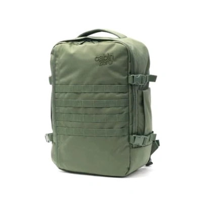 CABINZERO 'Military 36L' ultra light cabin bag with luggage trackers. MYSTIC GREEN CZ182513 URBAN With military-grade nylon, webbing, air-mesh shoulder straps, top and side grab handles, a bottle pocket and lockable zippers Laptop size: up to 17 weight: 950 g / 2 lb 2 ounces dimensions: 46 x 33 x 16 cm / 18.1 x 13.0 x 6.3 inch capacity: 36L material body: 1000 denier nylon fabric material lining: 100% polyester water resistant coating YKK zippers - features. the highest quality primary primary Zips
