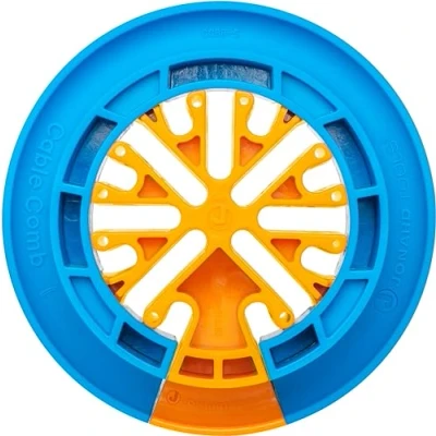 Comfortable ergonomic concave finger pull for combing the cables. Zytel nylon resin that provides durability, lower friction and strength. Bright yellow exterior paint for workplace visibility. Fits and organizes up to 48 CAT-5 cables Instructions included