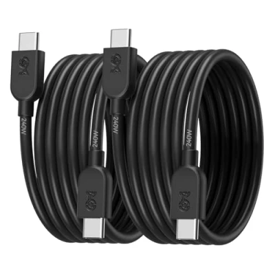 High-Power USB-C Charging: Power up your tech with our 240W USB-C charge cable, designed for devices requiring substantial energy like gaming laptops, MacBook Pro/Air, Dell XPS, HP Spectre x360, Lenovo Yoga, and Surface Pro. It's also compatible with smartphones and tablets including iPhone 15 series, iPad Pro/Air/Mini, Galaxy S23/S22 series, and more, offering ultra-fast charging capabilities. Classic Color Selection: Choose between sleek black or white designs to match your devices or setup. Simplify your cable management with these universally appealing USB C to USB C cable options. Extremely Soft and Flexible: The Type C to Type C cable features an ultra-durable yet flexible cable jacket for enhanced tangle resistance and protection when bending and flexing the cable; The tangle-free USB C cord is soft to the touch while providing unparalleled durability in the most demanding conditions. Durable and Powerful: Each USB C fast charging cable features durable strain relief and a flexible cable jacket for protection; Enjoy unmatched durability with this USB C charger cord set. Data Transfer Companion: The fast charging USB C cable supports data transfer at up to 480Mbps speeds; Transfer data between devices quickly with this USB C cable.