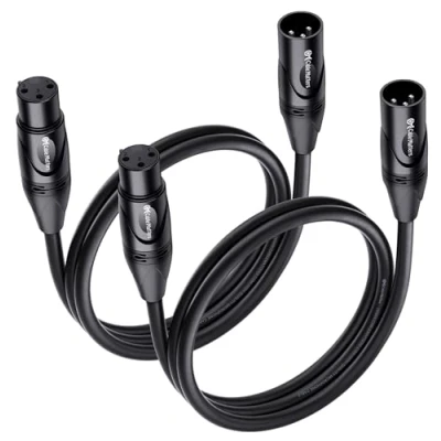Pro-grade microphone cord is designed for microphones or other professional recording, mixing, and lighting equipment with the 3 pin XLR connectors Convenient and cost-effective 2-pack microphone cables provide spare or replacement XLR cables (XLR male to female cable) to use on a set of microphones or on different systems Balanced Mic cable with soft PVC jacket is constructed with oxygen-free copper (OFC) conductors for delivering pristine sound Copper braided shielding of these Mic cables provides maximum cancellation of hum and noise; Polyethylene insulation improves high frequency response. Heavy duty metal connectors with molded strain relief and grip treads increase durability and help easy plugging and unplugging The Mic cord is compatible with equipment with 3-pin XLR connectors such as shotgun microphones, studio harmonizers, mixing boards, patch bays, preamps, speaker systems, and stage lighting with an XLR cable port
