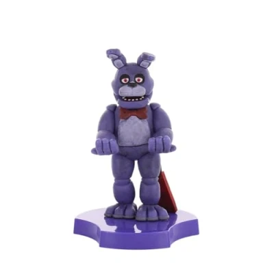 Novelty Phone Stand: Combining eerie charm with everyday function, this smartphone stand keeps your phone, earbuds and other small gadgets secure, even while charging. A mischievous must-have collectible bringing order to your chaos Headphone Holder: Elevate your desk decor with a haunted helper by your side! More than just a desk phone holder, this eerie little holder doubles as a reliable headphone stand, keeping your earbuds tidy, secure, and always ready for the next fright Five Nights at Freddy's Fans: Functional desk decorations perfect for Five Nights at Freddy's fans. This collectible desk phone stand brings the iconic rockstar Bonnie to life. Perfect for fans who want their tech guarded with mischief and menace Official FNAF Merchandise: Officially licensed by FNAF, this collectible figure is part of the popular Cable Guys Minis range of earphone and mobile phone stands. Ideal as FNAF gifts or as a display piece for true fans Dimensions: At approximately 4 inches tall, this mini holder fits neatly into any setup, making it an ideal bedside phone stand or phone holder for desk spaces. The stable base and secure arms ensure this eerie animatronic is always ready to hold tight
