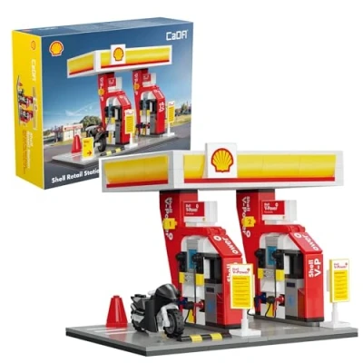 The CaDA 'Shell Retail Station' is an officially authorised product and reproduces the most common layout of Shell retail stations. The set comes with a small motorcycle. The refuelling pipe can be used and installed on the bike to simulate the refuelling scene. Model number C66028W - "Shell Retail Station" - a replica scale model of a Shell fuel station. Number of pieces: 305 pieces. Assembled model dimensions: 17.8cm length, 13cm width x 14.2cm height. Supplied in retail box packaging, the model includes a handy instruction manual with step-by-step colour build instructions., Manufacturer: CaDA