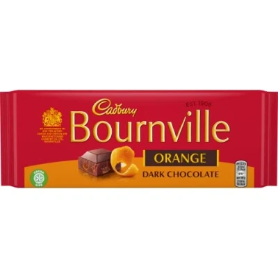 Delicious Bournville dark chocolate with tasty orange pieces throughout Bournville brings you generous chunks of smooth dark chocolate with that distinctly chocolaty Bournville taste that you have always known and loved Perfect for sharing with friends and family 100g Bar The distinct Bournville taste