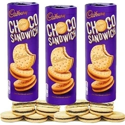Cadbury Choco Sandwich Biscuits.. Enjoy a chocolatey treat with these delicious Cadbury Choco Sandwiches.. Chocolate filling encased by two layers of biscuit.. Perfect as a lunchtime snack, or with a hot cup of tea.. Size:‚ 260g (Approx.).