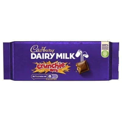TREAT YOURSELF: Indulge in the creamy Cadbury Dairy Milk chocolate bar filled with delicious Crunchie bits and honeycomb pieces SHARE OR NOT: A generously sized 180g share bar, perfect for enjoying alone or sharing with friends and family SWEET AND CRUNCHY: Enjoy the satisfying mix of rich milk chocolate and crunchy honeycomb in every bite IRRESISTIBLE FLAVOUR: Cadbury's signature dairy milk recipe mixed with chunks of Crunchie for a delightful taste sensation SATISFYING SNACK: Satisfy your sweet cravings with this delectable blend of smooth chocolate and crispy crunchiness