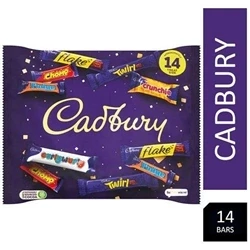 Cadbury treat size bag. Perfect for sharing, parties and celebrations. Delicious Cadbury chocolate. Approximately 22 bars per pack. Includes Chomp, Twirl, Crunchie, Dairy Milk Buttons, Flake and Fudge. Pack of 1.