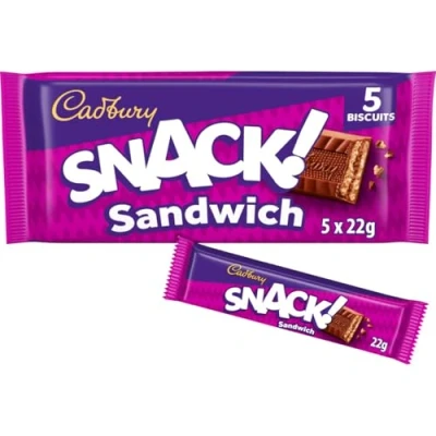 DELICIOUS MILK CHOCOLATE TREAT: Enjoy Cadbury Snack! Sandwich biscuits coated in smooth Cadbury milk chocolate for a rich, creamy, indulgent everyday snack you’ll love CRUNCHY BISCUIT SANDWICH: Crisp golden biscuit layers filled and covered with iconic Cadbury chocolate, delivering a satisfying crunch and melt‑in‑the‑mouth texture HANDY MULTIPACK FORMAT: Contains a multipack of 5 individually portioned biscuits (110 g) ideal for lunchboxes, work breaks, travel snacking or sharing with family PERFECT ANYTIME SNACK: A convenient grab‑and‑go chocolate biscuit designed for quick treats, coffee breaks, dessert moments, gifting or adding to snack cupboards QUALITY CADBURY CHOCOLATE: Made with the trusted, classic Cadbury milk chocolate flavour loved across the UK, offering dependable taste and high‑quality ingredients