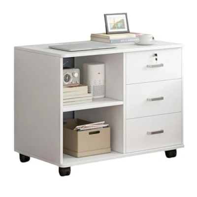 3 Drawers & 2 Large Open Storage Shelves: With 3 drawers & 2 large open storage shelves, this cabinet is very easy to clean and provides plenty of storage space for small items, making it a great helper for organizing your files. Easy To Move: Equipped with 360 degree casters design, this movable file cabinet is easily moved to wherever you want to go for your convenience. Premium Material: Made of premium wood for long-term use, the office cabinet is scratch resistant and waterproof, and the spacious desktop can hold your printer or scanner. Heavy Duty & Easy Assemble: This solid constructed office lateral cabinet with evenly distributed maximum weight capacity of 150lbs. Overall dimension: 23.62"L x 13.39"W x 23.23"H, easy assembly. Multifunctional & Stylish: Office filing cabinet with open storage spaces, file drawers and storage cabinet is designed to keep the office machines, paper and files organized. It can be fixed beside or under desk. The sleek and modern finish is an easy fit for office or home study.