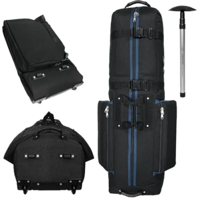 Constrictor golf travel bag + North Pole golf club protector (protects longest clubs inside travel cover) Internal & External Compression Straps Keep Clubs Secure – Heavily padded top & inline skate wheels Top of the Line 1800D Fabric Construction (3 x the Thickness of 600D Fabric) – lockable zippers (TSA locks not included) North Pole club protector composed of premium aluminum and ABS plastic materials – full adjustable up to 52” in length International products have separate terms, are sold from abroad and may differ from local products, including fit, age ratings, and language of product, labeling or instructions.