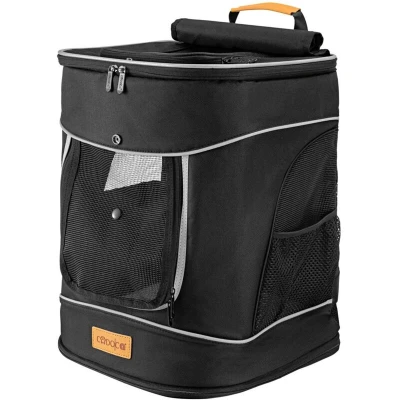 General description Comfort and safety for dogs, cats, and other small animals! The CADOCA pet rucksack is perfect for long walks, excursions, or trekking tours. It features openings from both the top and front, a stable back section, and a strong MDF base plate to prevent sagging. The backpack includes two side pockets made of robust rubber mesh, ideal for storing drinking bottles or food, and three mesh windows for good air circulation, allowing your pet to observe its surroundings. An integrated short lead ensures your pet stays secure inside the carrier, while the padded lambskin-look insert adds extra comfort. Technical specifications Dimensions (LxDxW): 31 x 30 x 41 cm Material: 100% polyester Load capacity: max. 20 kg Robust 600D Oxford material 2mm thick PE plate for back reinforcement Usage Ideal for transporting pets during walks, excursions, or trekking Can be opened from the top and front for easy access Adjustable shoulder, chest, and lap straps for high carrying comfort