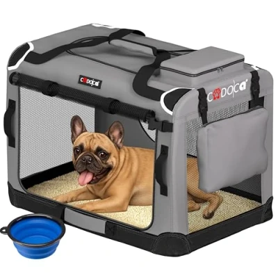 SOFT, COMFORTABLE TRAVEL CRATE FOR PUPPIES, KITTENS, LARGE DOGS & CATS This fabric dog crate provides a cosy, secure space for puppies, small dogs, medium dogs, large dogs, cats, kittens and small pets. Ideal for home use, car transport, vet visits and holidays. FOLDABLE & PORTABLE – PERFECT FOR CAR TRAVEL AND STORAGE The lightweight folding design makes it easy to store and carry like a travel bag. Ideal as an alternative to a dog car seat, dog travel crate, dog crate for car, car dog cage, pet carrier, small pet carrier or cat carrier bag. BREATHABLE MESH WINDOWS FOR CALM, COMFORTABLE PETS Large mesh panels provide excellent airflow and visibility, helping reduce stress during journeys. Suitable for daily use in living rooms, hallways and bedrooms as an indoor dog house, place for a cat bed or dog bed medium or pet pen alternative. DURABLE FABRIC WITH STRONG FRAME FOR EVERYDAY USE Built with robust materials and reinforced edges for long-lasting reliability. Compatible with dog beds, crate beds, dog crate mats, pet beds, and kitten beds to create a cosy resting area. IDEAL SIZE FOR DOGS, CATS & GROWING PETS Suitable for puppies, small dogs, medium dogs, large dogs, kittens, and compact pets. Fits small dog beds, medium dog beds, crate beds, dog crate mats, and supports crate training, puppy accessories, puppy pens indoors, dog training routines, and everyday pet care at home or during travel