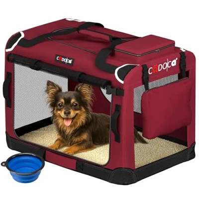 Cadoca® S Dog Crate 50x35x35cm Foldable Breathable Car Pet Transport Box Travel Robust Vet Holiday Cat Carrier Puppy Kitten Rabbit Dark Red