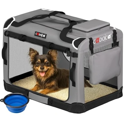 SOFT, COMFORTABLE TRAVEL CRATE FOR PUPPIES, KITTENS, LARGE DOGS & CATS This fabric dog crate provides a cosy, secure space for puppies, small dogs, medium dogs, large dogs, cats, kittens and small pets. Ideal for home use, car transport, vet visits and holidays. FOLDABLE & PORTABLE – PERFECT FOR CAR TRAVEL AND STORAGE The lightweight folding design makes it easy to store and carry like a travel bag. Ideal as an alternative to a dog car seat, dog travel crate, dog crate for car, car dog cage, pet carrier, small pet carrier or cat carrier bag.for car, car dog cage, pet carrier, small pet carrier or cat carrier bag. BREATHABLE MESH WINDOWS FOR CALM, COMFORTABLE PETS Large mesh panels provide excellent airflow and visibility, helping reduce stress during journeys. Suitable for daily use in living rooms, hallways and bedrooms as an indoor dog house, place for a cat bed or dog bed medium or pet pen alternative. DURABLE FABRIC WITH STRONG FRAME FOR EVERYDAY USE Built with robust materials and reinforced edges for long-lasting reliability. Compatible with dog beds, crate beds, dog crate mats, pet beds, and kitten beds to create a cosy resting area. IDEAL SIZE FOR DOGS, CATS & GROWING PETS Suitable for puppies, small dogs, medium dogs, large dogs, kittens, and compact pets. Fits small dog beds, medium dog beds, crate beds, dog crate mats, and supports crate training, puppy accessories, puppy pens indoors, dog training routines, and everyday pet care at home or during travel